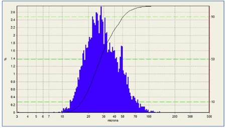 在這裡,我們使用 Pi Sentinel PRO 看到了一個典型的“粒徑”直方圖,報告以大約 30 μm 為中心的平滑(smooth)粒徑分佈。