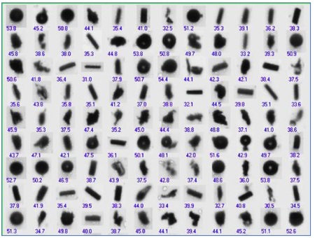 在查看粒子影像圖時,很明顯該樣本由不止一種粒子形狀組成。 “粒徑”數據可能會誤導操作者認為粒子都是相同類型的,而實際上它們不是。