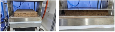 當 Lignitec 獲得合適的原材料並能夠立即使用 Fontijne Presses 壓片機進行測試時,突破便隨之而來。Lignitec 公司充分利用 Fontijne Presses 的壓片機,以 300 x 300 mm的規格開發、測試和改進其生物複合材料樣品。壓片機的即時可用性使他們能夠測試配方,並在可控的壓力和溫度下小批量生產樣品。這顯著縮短了開發時間,並促成了首批成功的生物基防水板材的誕生。