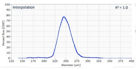 插值 (Interpolation)是一種估計測量數據點之間數值的技術。在PoreSmart™軟體中,使用三次Hermite方法進行內插。此方法將輸入資料分為幾個部分,並以三次多項式擬合每個部分,從而建立連續樣條。使用者可以選擇插值曲線上的點數。軟體報告配對因子 R2。