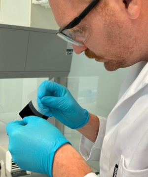 技術準備工作的一部分是按照客戶規格生產碳膜催化劑(CCM),以驗證 FORBLUE™ 膜在特定條件下的性能。生產碳膜觸媒時,必須使用 AGC Chemicals Europe 的離子聚合物將觸媒塗覆到 FORBLUE™ 膜上。在此過程中,均勻施加熱量和壓力對於生產高品質的碳膜觸媒至關重要。