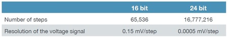 我們將比較24位元(POROLUX 孔徑分析儀)與 16 位元(如其他供應商所採用)例如,範圍為 0 到 35 bar 的壓力傳感器提供0到10V之間的電壓信號。這意味著 3.5mbar 的測量值對應於1 mV 的訊號。